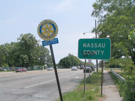 There are not one, but two signs welcoming motorists to Nassau County as the border is crossed east of the Cross Island Parkway. There are, of course, no such signs welcoming visitors to New York City or Queens as you are going west.