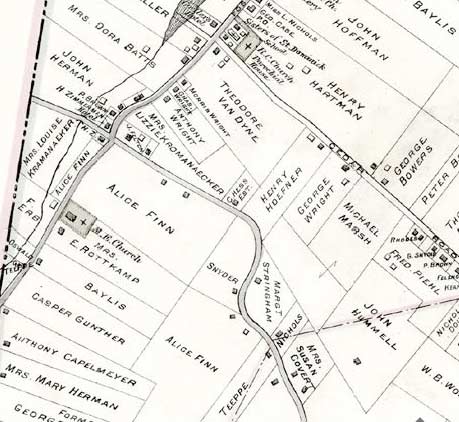 These 1909 maps show Central Avenue, now Linden Boulevard, running alone through what is now Cambria Heights, and Central Avenue, shown by the curving gray line, running south in Elmont and Valley Stream. Central Avenue continues to take that path, which has not been straightened.