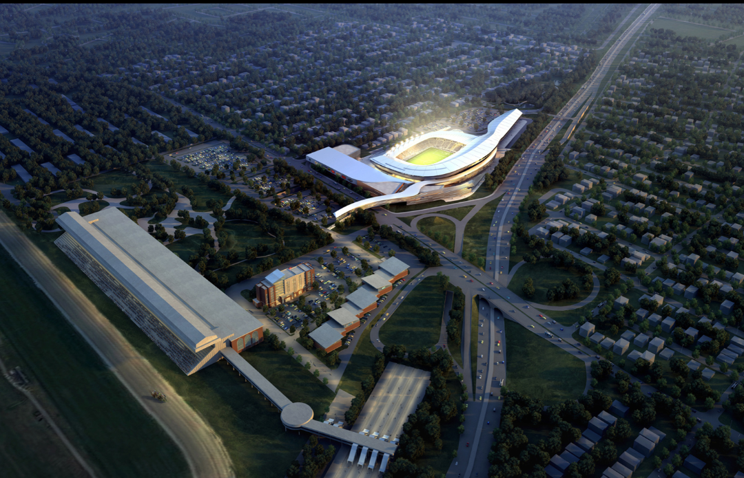 The extraordinary plan is anchored by a world-class soccer stadium, which seats 25,000 people, and will cost $400 million in private funds, at no burden to the taxpayer, reports say.