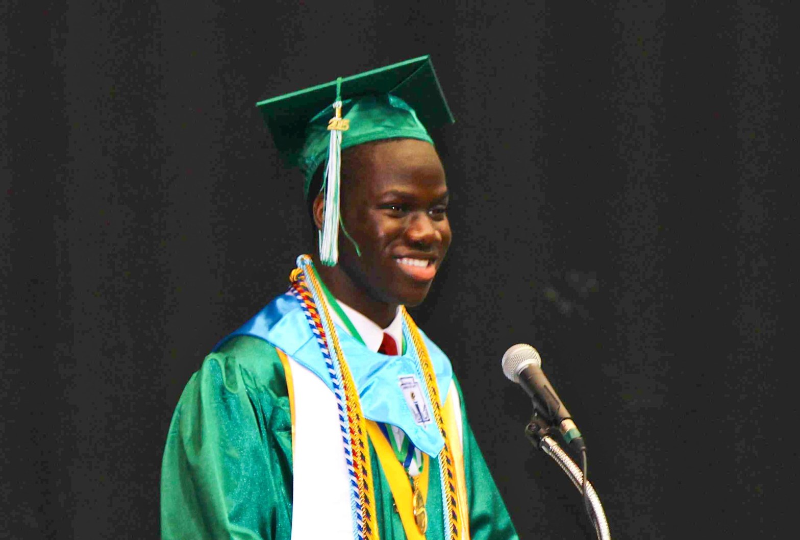 “Throughout your years at Elmont Memorial High School you have met and overcome every challenge. I am here to tell you that this is only the beginning. You will be faced with many more difficult challenges. Some will test your fortitude and desire to succeed. As a high school graduate, you now have the responsibility of actively becoming involved in society and being aware of local, national, and international issues. I want you to understand that events in the United States 10 miles, 100 miles, a thousand miles away will affect you. Just two weeks ago in Charleston, South Carolina, nine African Americans were murdered while praying in church. At the core of this horrific act was racism. As you move forward the sad reality is that you, too, will face racism and stereotypes.